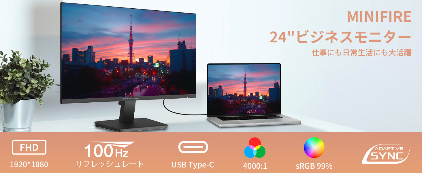 - 24インチ モニター IPS ディスプレイ フルHD HDR10 100Hz ブルーライト軽減 フリッカーフリー VESA対応 フレームレス HDMI ポート スピーカー付 (USB Type Cゲーブル付き-24X3A)