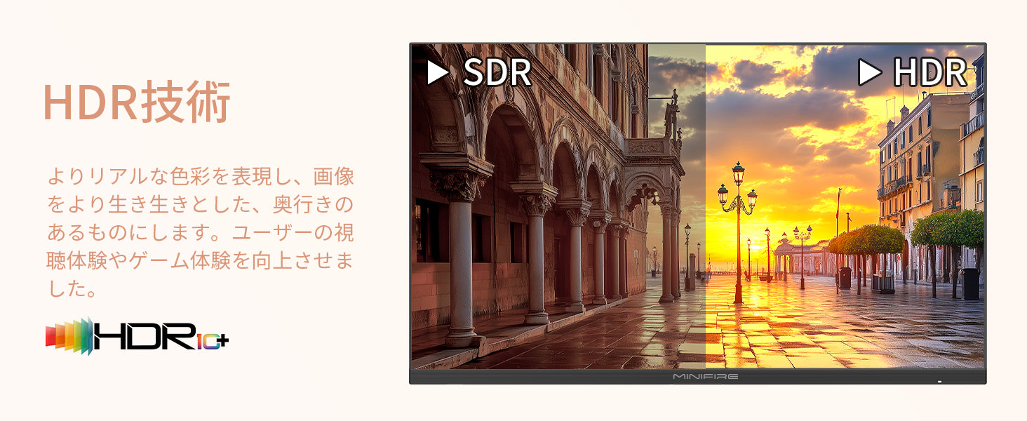 - [画面サイズ] 24 インチ IPS モニター、[最大解像度] 1920 x 1080、[アスペクト比] 16:9、[コントラスト比] 1000:1、[明るさ] 250cd/m2、[色域] 72% NTSC [色深度] 1670 万色、8 ビット、HDR10